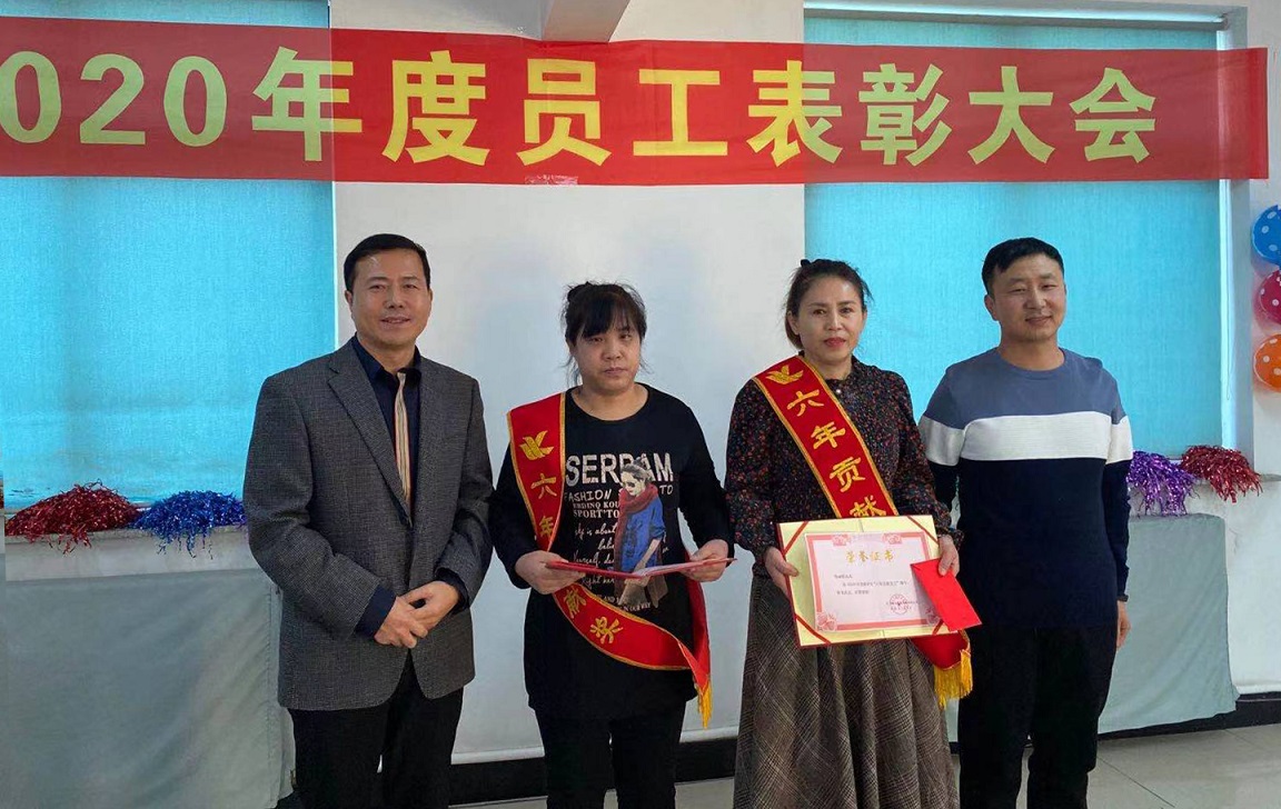 閆希東、薛曉娟獲得2020年度十年貢獻(xiàn)獎(jiǎng),十年的堅(jiān)守不渝,十年的默默耕作,他們把最美好的青春韶華賦予了我們?yōu)橹餐瑠^斗的事業(yè),十年如一日他們時(shí)刻心系企業(yè)的憂(yōu)患,與企業(yè)同風(fēng)雨共命運(yùn),正是因?yàn)樗麄兊母冻鰟P為的今天才如此絢麗。公司總經(jīng)理王鐵良與銷(xiāo)售部經(jīng)理趙福寬為獲獎(jiǎng)?wù)哳C發(fā)榮譽(yù)證書(shū)。